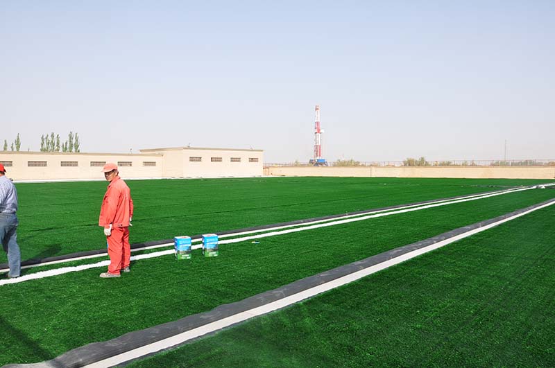 6、具有施工方便的特点,可在沥青、水泥、硬沙场地进行铺设,经久耐用,不易褪色,维护简单,用清水冲洗即可。符合德国DIN测试标准,通过6000小时光照射和高低温试验,保证在紫外线照射下性能稳定